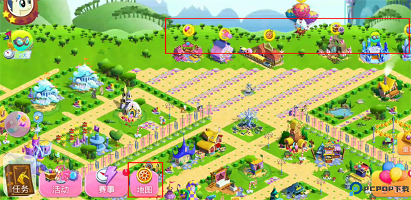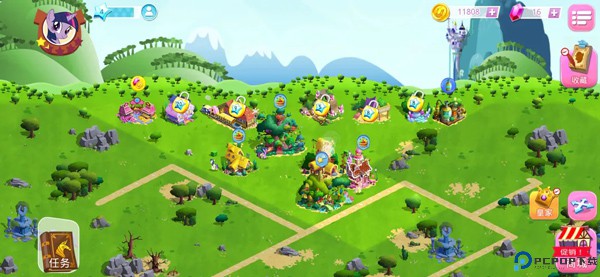 1、打开友谊的魔法官方版,进入游戏主界面,我们需要帮助小马们建立自己的家园,