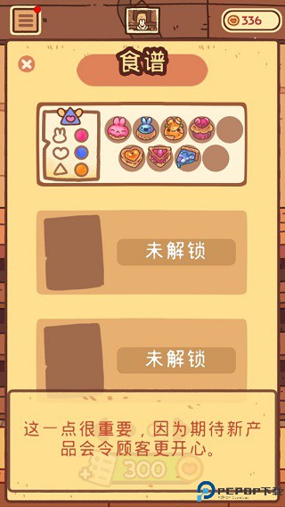 3、将不同的食材搭配在一起解锁新口味的蛋糕,将情感与馅料混合做出更加每位的糕点,赚更多收入;
