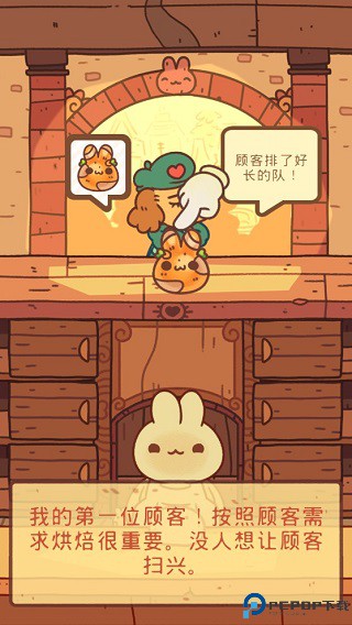 1、治愈的游戏画风让大家在放松玩游戏,感受兔兔蛋糕店游戏带来的乐趣,随时在线经营店铺,接待所有的顾客;