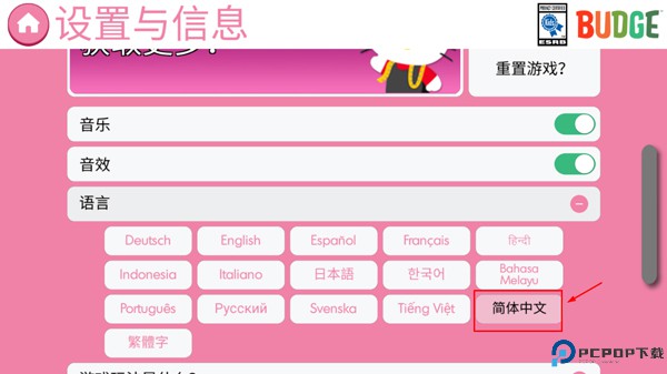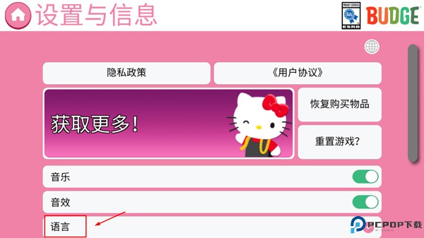 1、首先打开凯蒂猫时尚之星旧版本游戏,游戏一开始就是中文语言,如果不是,可以点击左上角设置按钮;
