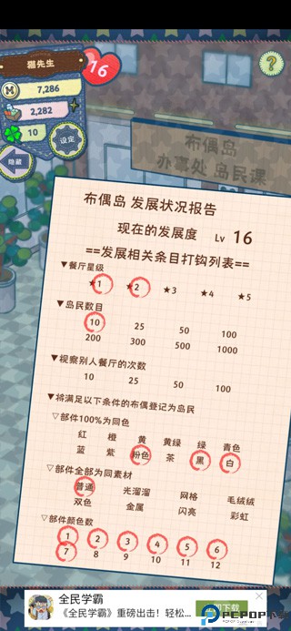 首先升级的要求都在下面了,除了餐厅星级,最快的就是攒各种布偶动物。然后让这个动物成为岛民。