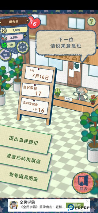 2、或者到地铁左上角办事处,如图,点“提出岛民登记就好”(资质好的先留着当服务员吧,变成岛民再抓回来还是得花)