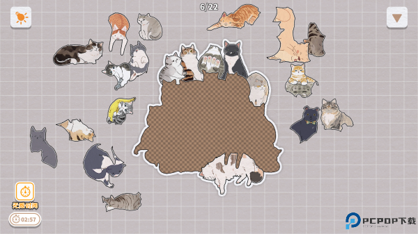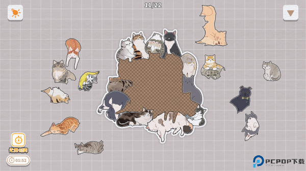 2、玩家需要将零散的猫咪拖进画面中间的拼图中,根据形状排列。