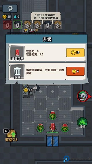 4、升级门时要抓住时机,门血量低时立即提升能快速恢复耐久,确保能持续抵挡住老板的进攻。