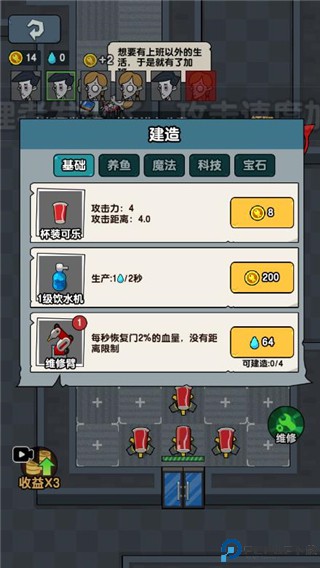 3、玩家可以通过摸鱼来获得更多奖励,同时不断提升防御塔的等级和能力。
