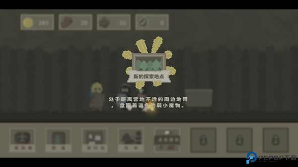 这个时候我们的新手期就算通过了,解锁了一个新的探索地点,大家可以点击营地的马车去往探索地点进行冒险。