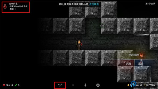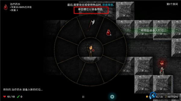 6、选择第一个后角色手中的物品会发生变化,武器会变成药水,再次点击就可以切换回来;
