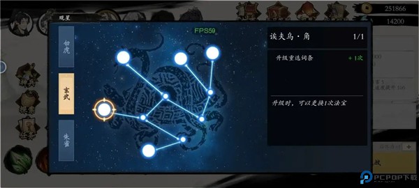 6、图内可以免费刷新一次选择法宝,观星点出玄武系法宝刷新后可以多一次,是每次升级都能换一次。