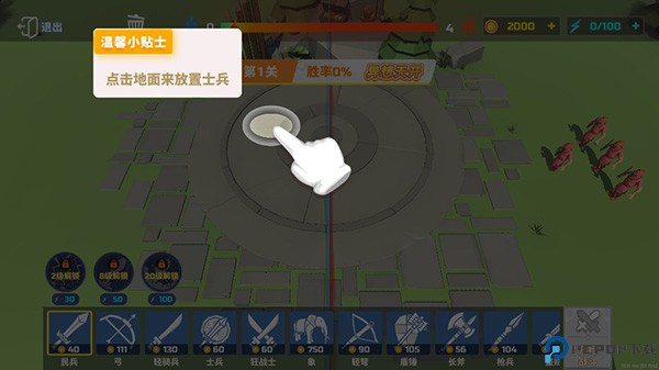 2、这里提示,点击地面可以放置士兵;