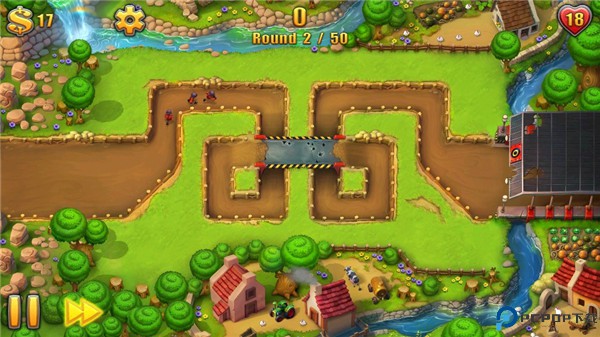 如果之前没有全部3星的话这关可能会没有辐射塔,大家可以用喷火塔或其他的塔代替试试看