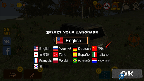1、下载游戏并进入时会提示你更换语言,在所有语言中选择中国