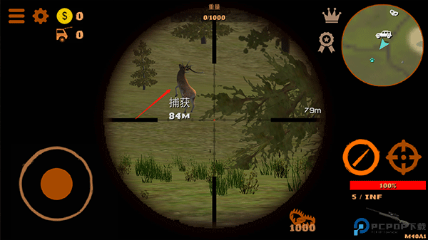 7、若出现猎物时,你可以使用使用倍镜瞄准猎物,并点击射击按钮将猎物击杀