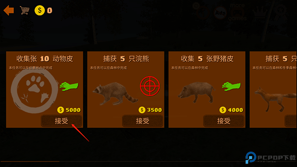 8、猎物击杀后前往猎物处并点击手按钮收集皮就可以完成你接取的任务啦