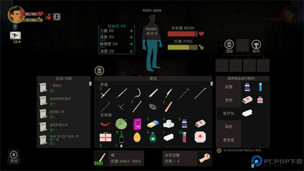 2、随机生成地图、获取经验、制作武器并寻找有用的物品。