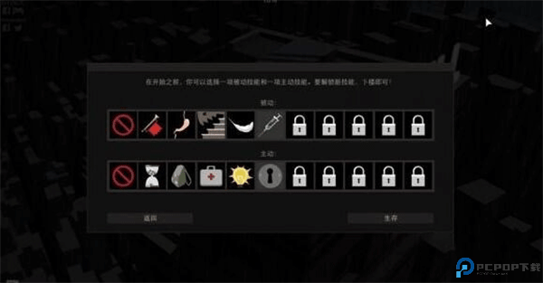 2、进入游戏界面,我们可以先熟悉一下地图环境,当死亡后会解锁主动和被动技能,然后游戏正式开始,