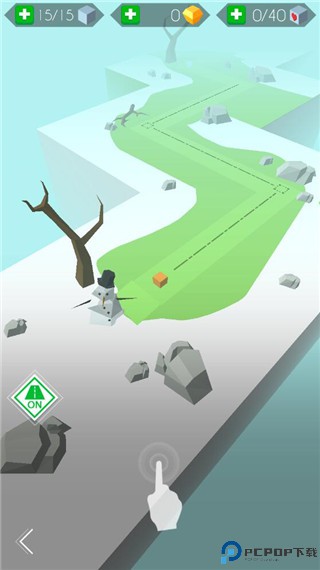 1、跟随音乐节奏点击,使线条转向,指引线条躲避障碍,到达终点。