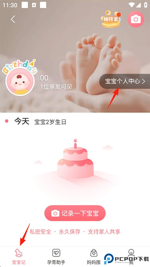 1、打开宝宝记APP,点击宝宝记-宝宝个人中心;