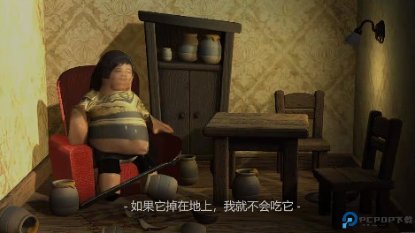 1、点击进入游戏,想办法吃到桌子上的食物,因为太胖你不能站起来移动桌子;