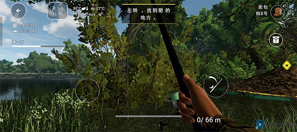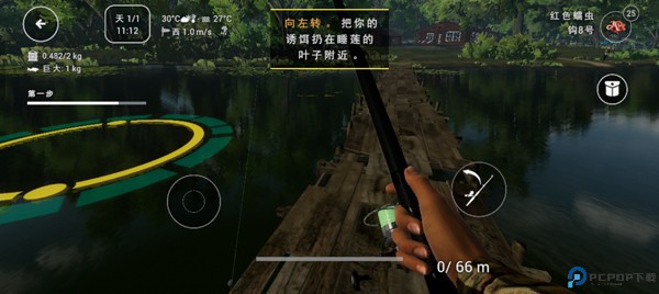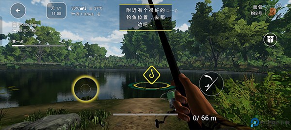 3、左边的遥控是控制方向的,我滑动左下角的摇杆来到最好的钓鱼位置;