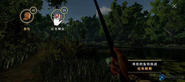 3、在游戏中选择鱼竿和钓鱼技巧,开始钓鱼