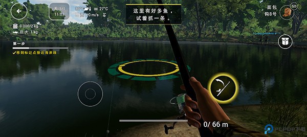 4、右下角是抛竿按钮,寻找到合适位置后点击此键抛竿即可;