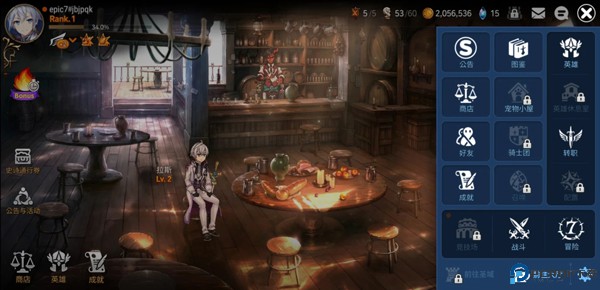 1、打开第七史诗国际服,通过新手教程后,点击右上角方块按钮。