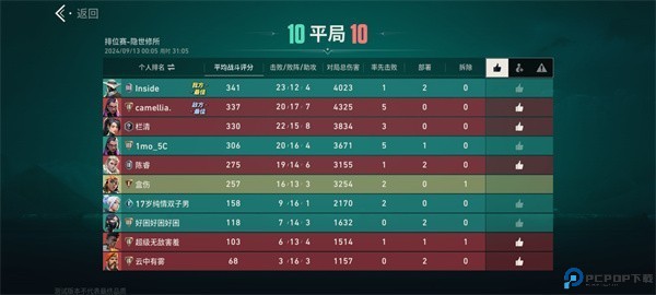 7、完成对决之后就会有【对局统计】,每一局的表现都会有详细的数据统计,可以在对局结束之后查看。