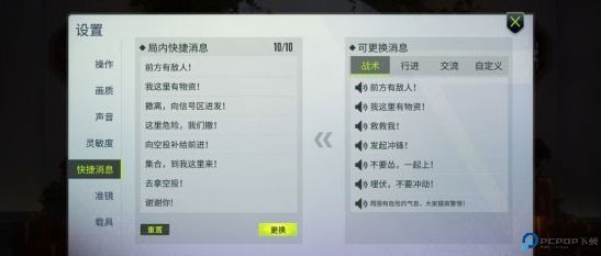 游戏内快速消息,例如“前方有敌人!”可以用来标记视线所指方位,“我这里有物资!”可以用来标记物品方位,可以帮助你更好的和队友沟通,播报战况,掌控战局。