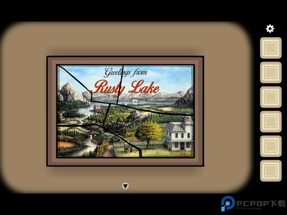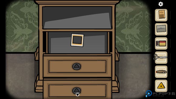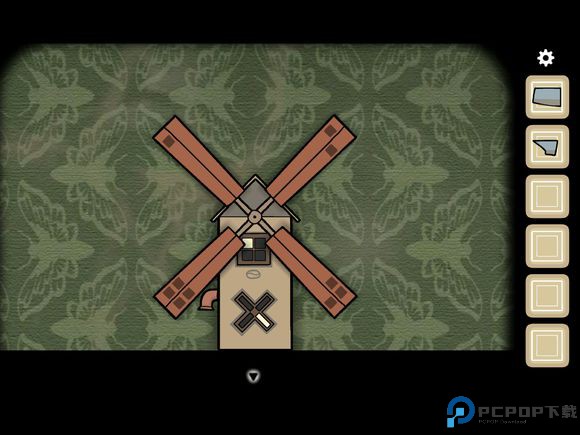首先抽屉里有螺丝刀和一张纸片。用螺丝刀旋开门边的电灯开关,按图弄,开灯,拿到第二张。第三张在风车里,上面指示风车扇,下面指示要调到的位置,如此几次得到。第四张还是在盒子里,把方块调到相应位置即可。