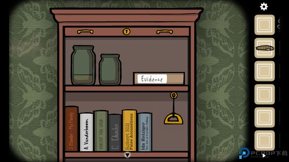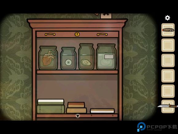 书柜的一层摆了几本书,可以移动,很明显是要你按某种顺序排列。我们在抽屉中的档案中翻找,会发现有很多档案画着疑似书架的图案,按此解开书架谜题