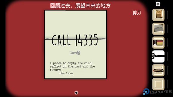 来到打字机,输入the lake,会打印一张纸,上面画个剪刀很明显是要你剪开,剪开后拼一下,得到打电话的提示。