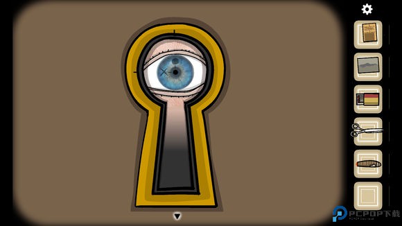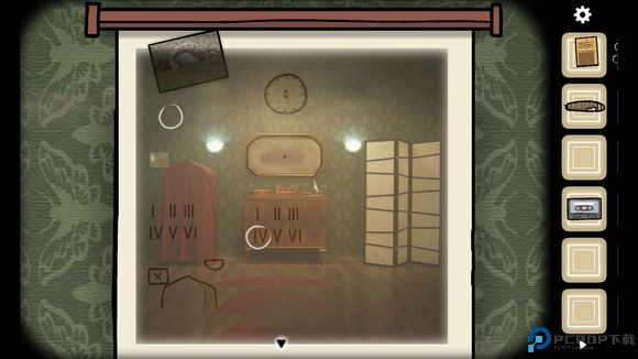 输入电话号14335(注意,这种老式电话要转到底才行。输入成功后左上会有号码提示)。随后电话提示去看钥匙孔。多点几次后一只大眼睛突然出现,吓人一跳。眼睛上有咱们熟悉的X和·符号,很明显提示的是钟的指针位置。(很奇怪为什么会有人卡在这里)
