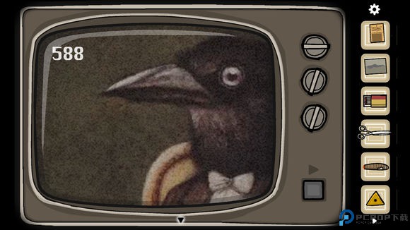 还记得第二张胶片吗,打开投影仪,取出胶片1,放入2,去对面会发现投影出一个画圈的照片,一头雾水。拉起投影布会得到提示:TV588。并且仔细观察,发现五个圈分别圈着五个东西,旁边写着对应的符号。打开电视收看588,会得到顺序。按照出场顺序:乌鸦,主角,女人,蓝色药瓶,黑影。记录下他们对应的符号。