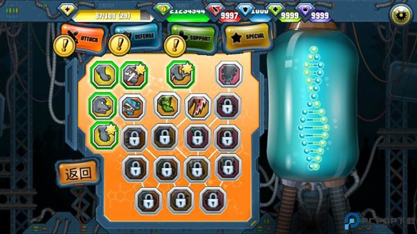 1、游戏内通过基因改造,强化宠物的各项属性,提升其整体力量。