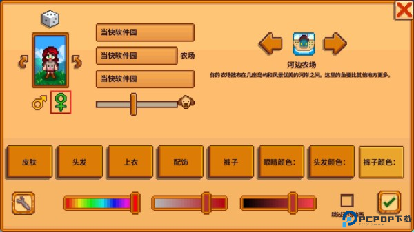 2、点击创建后可以设置姓名、农场名、外表设置,全部设置完成后点击右下方的“√”即可