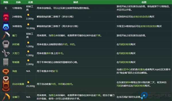 你可以使用锄头在小镇四周锄地以获得黏土;在冬天,你能挖到冬根和雪山药。