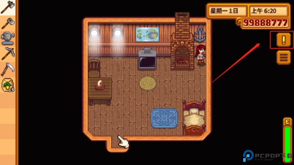 7、走出房间后可以在附近开始开荒,左侧是工具栏