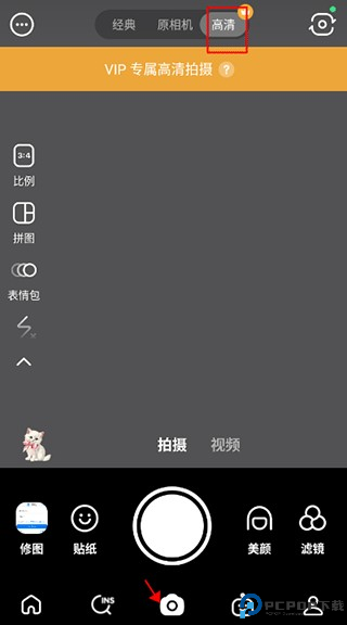 1、打开安装好的app,点击拍摄按钮,选择高清拍摄(经典和原相机也行,不过效果肯定没那么好)。