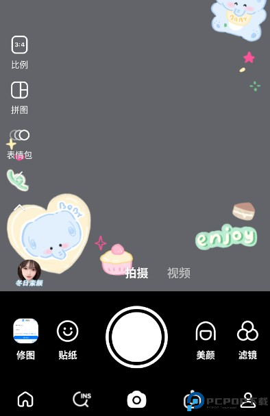5、如果想再增加一些效果,可以加一些贴纸,最后按下拍照按钮即可。