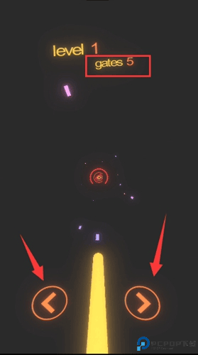 1、下图中红框中为过关条件,gates5指的就是你要通过5个环才能通过level1关卡;而箭头标注的地方为操控线条方向,只有左右: