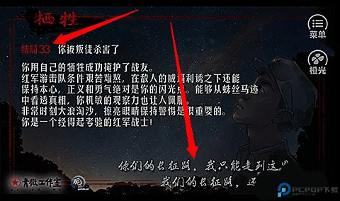 9、游戏含50+种结局:有的结尾是“全队牺牲、理想未泯”,有的是“胜利抵达延安、革命火种得以延续”,还有的则沉溺于信仰崩塌、孤身一人。