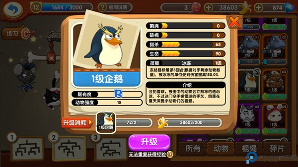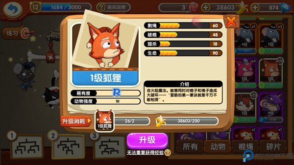 8、猫咪会扔飞镖,专门割断绳子,也会戳敌人屁股但没什么用。
