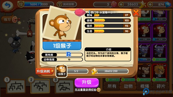 猴子的攻击力受角色等级、装备和技能影响,合理搭配队伍轻松击败敌人。