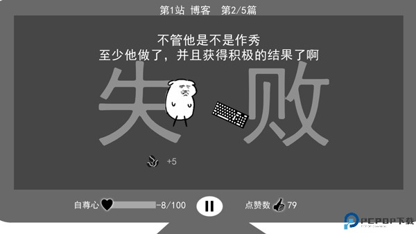 6、另外,如果角色受击次数过多,自尊心归零则导致游戏失败。
