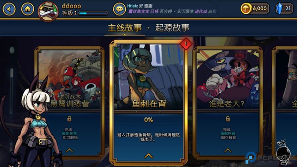 故事:这个就是本游戏的闯关界面了,进入后玩家可以选择关卡进行闯关,游戏内一共分为主故事和起源故事两类大关卡,在主故事里一共分为4个大关卡在这四个里需要玩家闯关前一关才可以继续。而起源里呢需要玩家有足够的等级才可以进入。