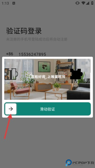 3、在短信验证码页,输入收到的验证码,完成唯果租房账号注册。
