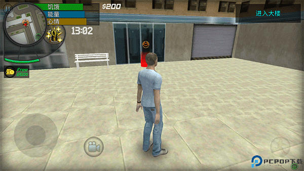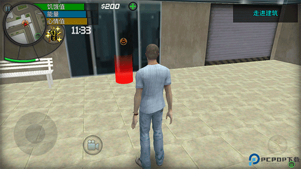 2、通过滑动摇杆使人物走到红色光柱的位置,进到驾校。