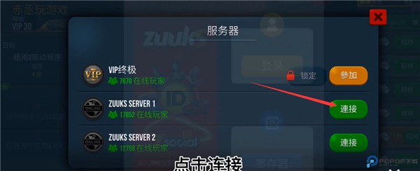2、这里我们就可以看见3个服务器,除了最上面的能够服务器进不去,其他都可进入,这里小编点击进入第二个服务器,点击连接;