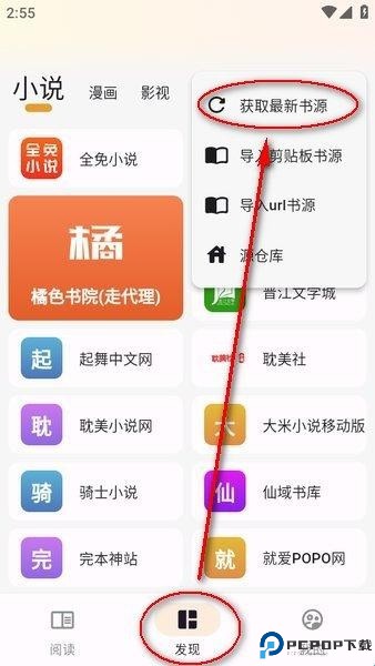 如果后面书源无法使用,就重新获取下,还是在“发现”界面,点击右上角的三个点,并点击“获取最新书源”即可;