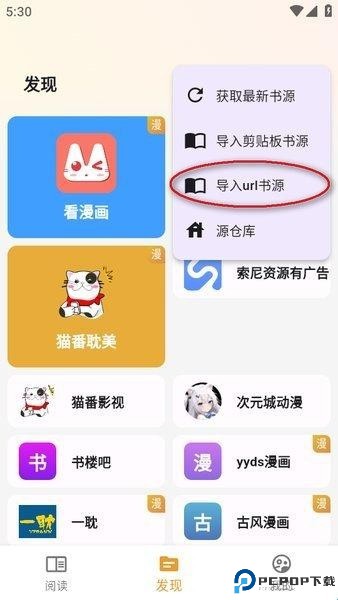 也可以手动导入书源,点击右上角的三个点击,选择“导入url书源”;